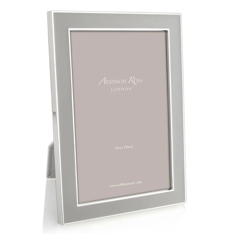 This chiffon enamel and silver frame is perfect for black and white or color photos in classic or contemporary settings. Silver trim with chiffon enamel accents, backed with dove grey luxury velvet. Wipe clean with a duster.