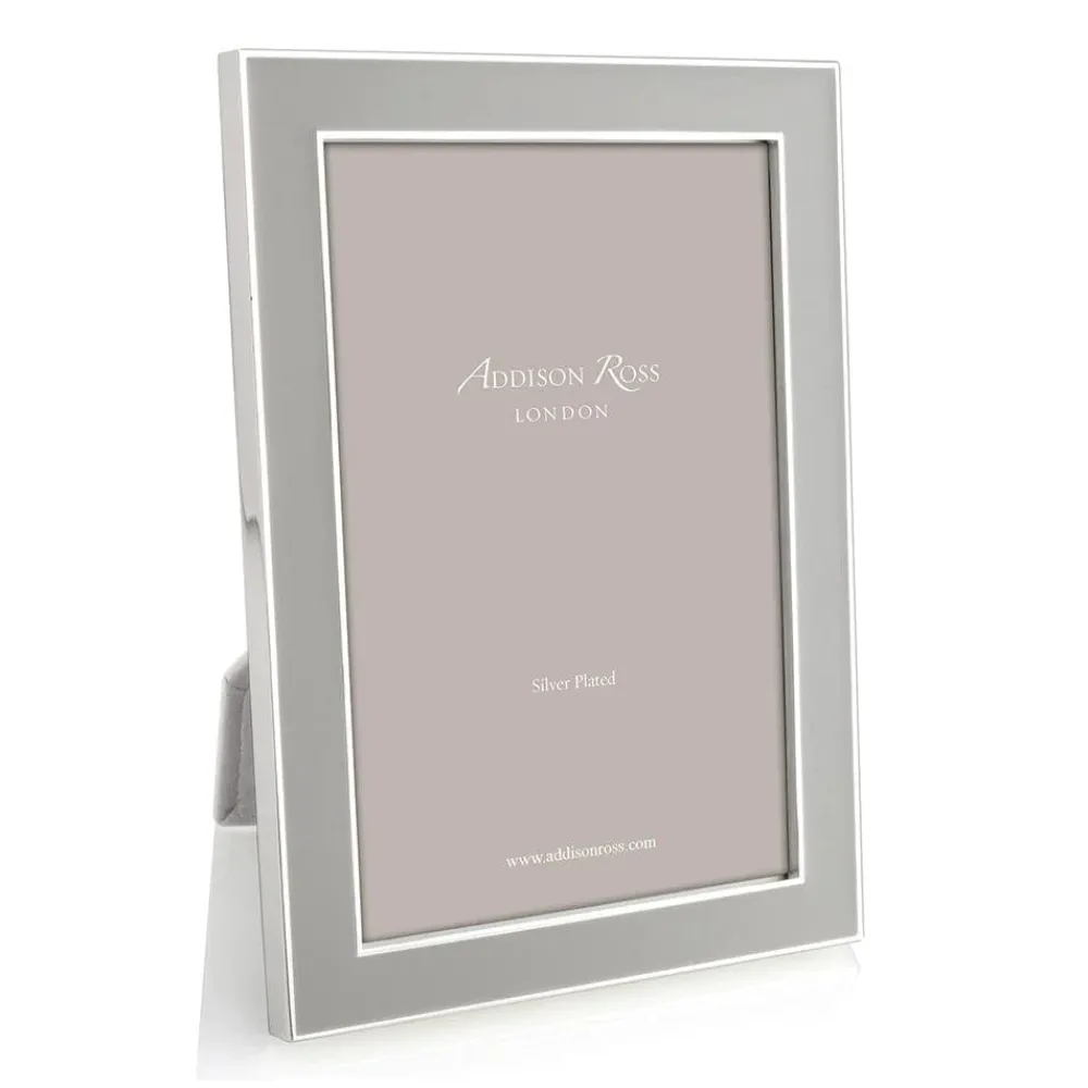 This chiffon enamel and silver frame is perfect for black and white or color photos in classic or contemporary settings. Silver trim with chiffon enamel accents, backed with dove grey luxury velvet. Wipe clean with a duster.