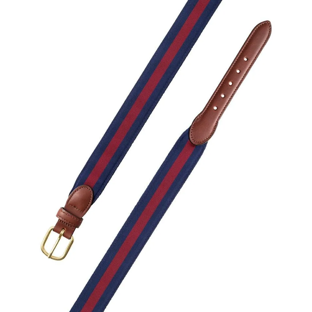 Be the first to review “Barrons-Hunter Tailgates|Navy & Burgundy Stripe Grosgrain Belt with Brown Leather” Cancel reply