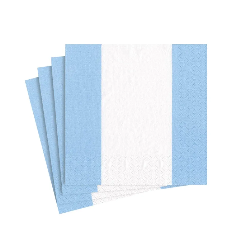Caspari Birthday|Easter|Bandol Stripe Light Blue Cocktail Napkin – package of 20
