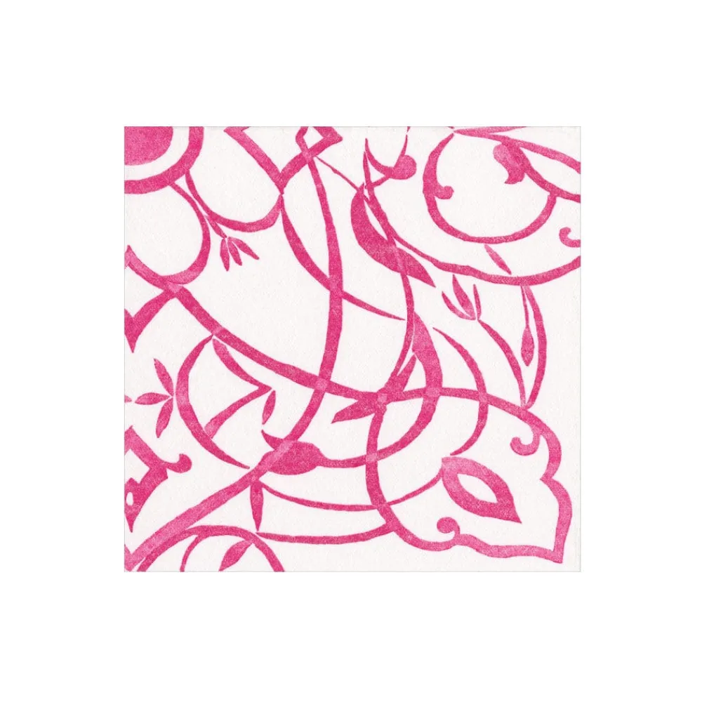 Caspari Boxed Cocktail Napkins|Algarve Fuchsia Paper Linen Boxed Cocktail Napkins - 30 Per Package
