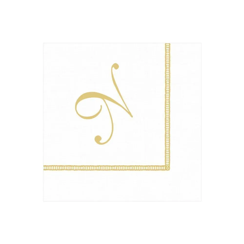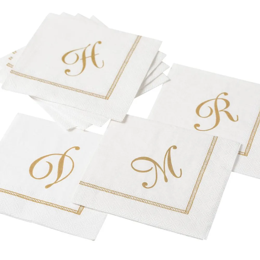Caspari triple-ply napkins are both striking in design and durable in function. Thoughtfully designed to elevate any occasion, they feature artwork and designs from museums and artists around the world. Our initial design effortlessly adds a personal touch to your bar or table. Each is made of chlorine-free bleached triple-ply tissue and printed in Germany with nontoxic, water-based, food-safe ink. They are FSC-certified and made using environmentally-conscious raw materials, which ensures they are both biodegradable and compostable. Our napkins bring eco-friendly style and convenience to your tabletop. 20 initial napkins per package.
