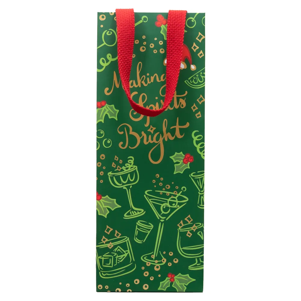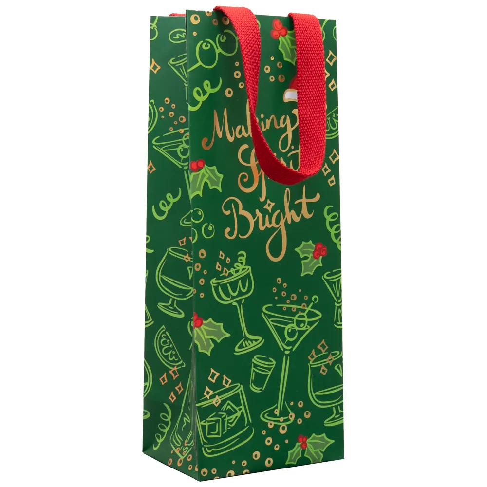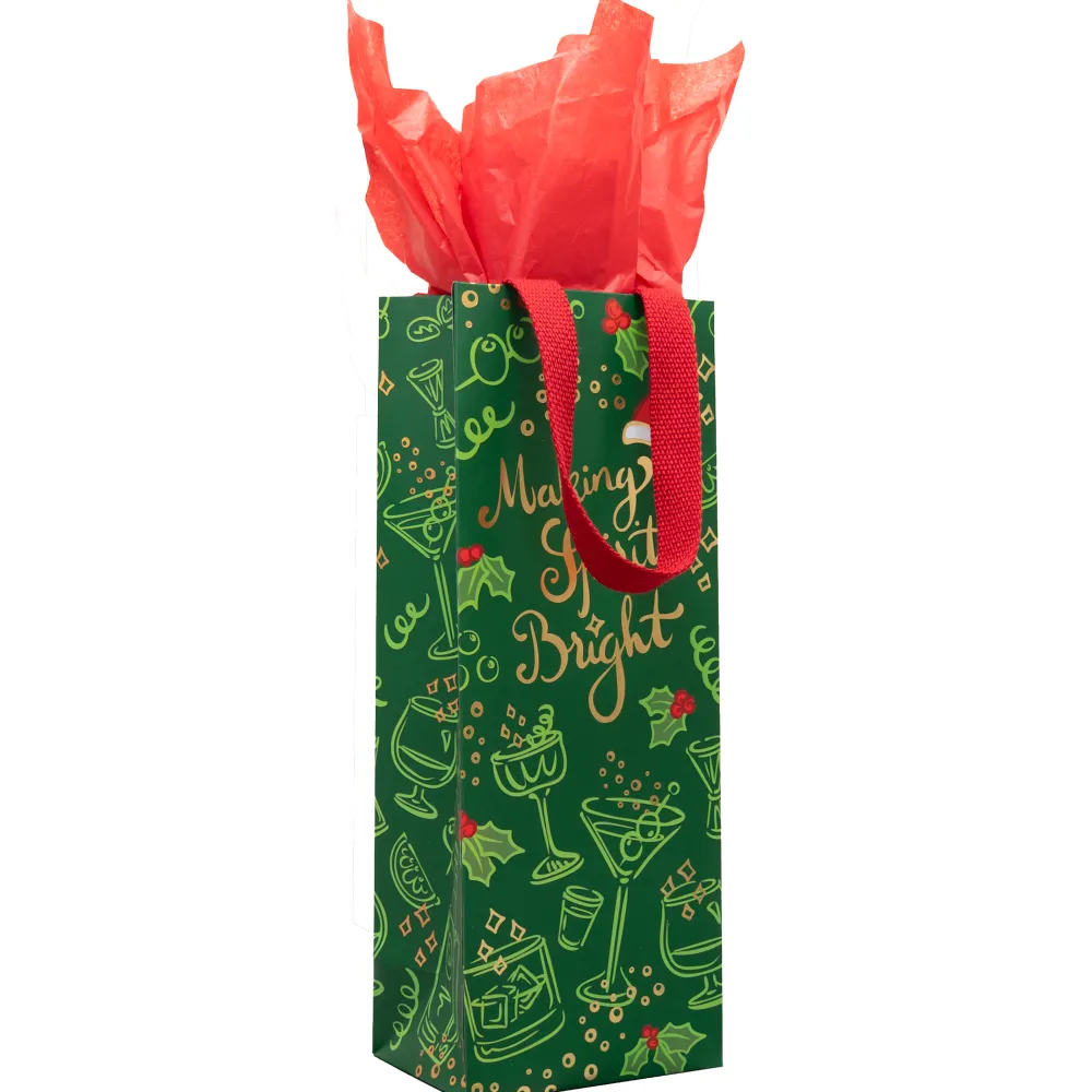 Caspari Christmas Gift & Bottle Bags|Gift & Bottle Bags|Making Spirits Bright Gift Bags - includes 1 Gift Bags