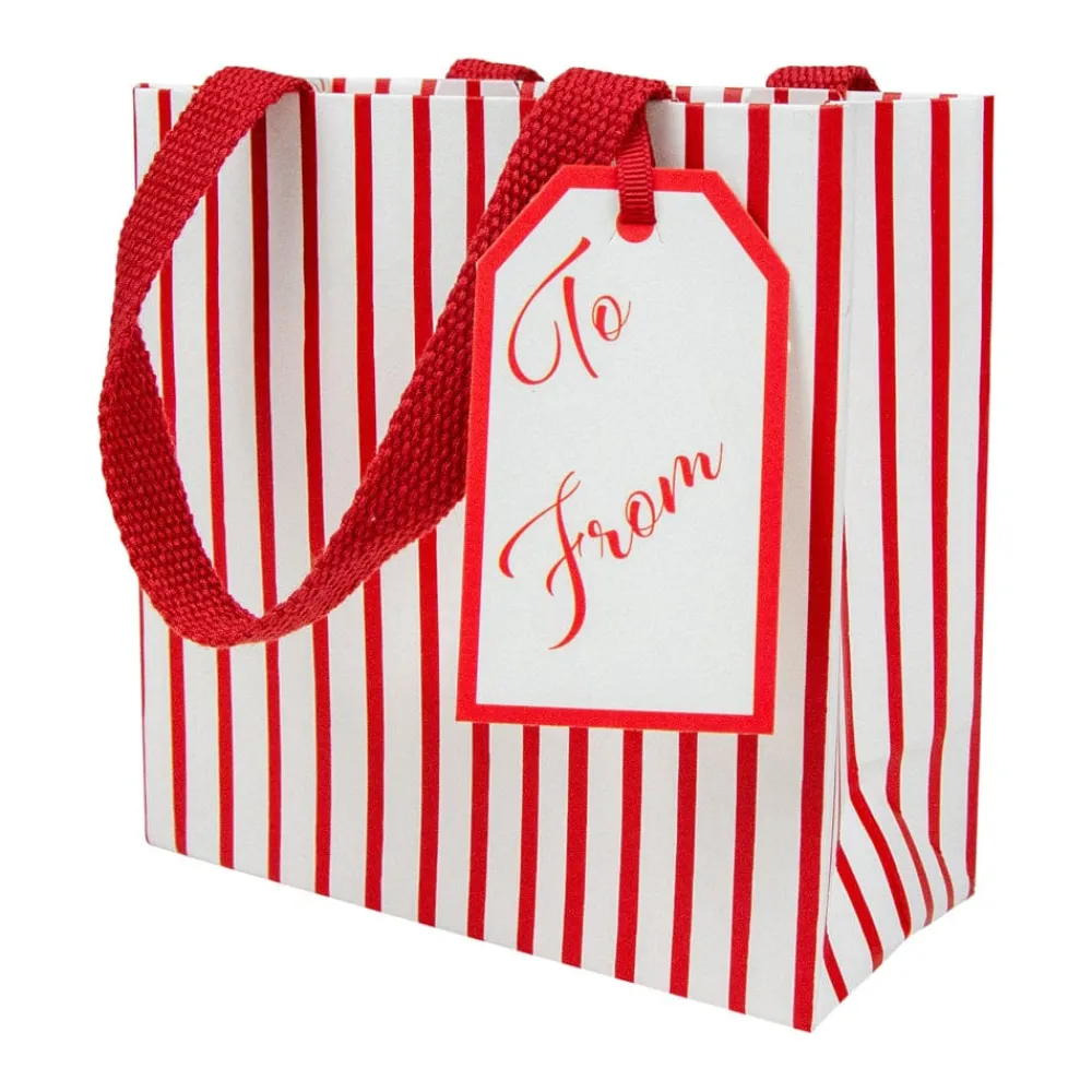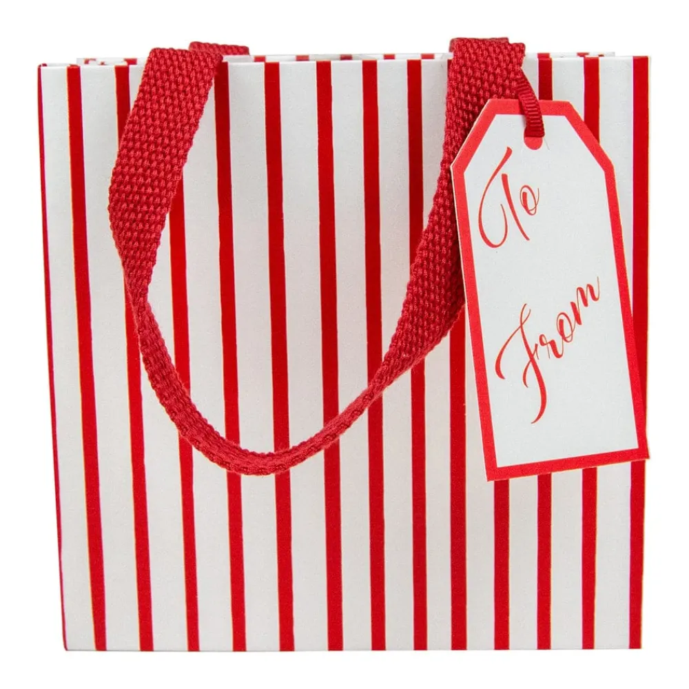 - This small square bag is perfect for carrying little or uniquely shaped gifts.