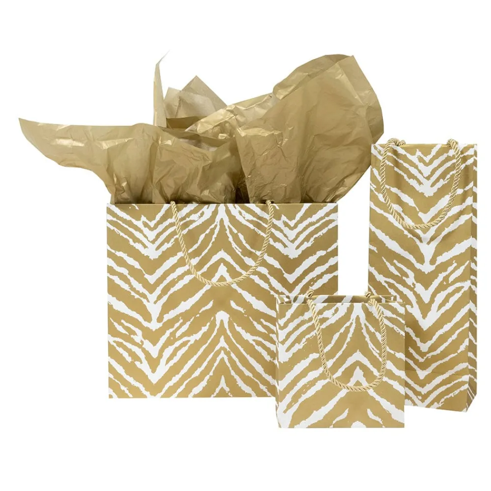 The details of our bags, however, are what truly make them special. Printed with high-quality inks, stamped in gold foil, adorned with die-cut ornament tags and applique elements, tied with a bow, finished in a high gloss, or given a matte finish, each bag is designed to be extraordinary and unique. Filled with personality, our gift bag assortment offers a design for any person, age, and occasion. Once your gift is bagged in a beautiful Caspari gift bag, you can finish it off with coordinating tissue paper, tags, enclosures, and adhesive labels.