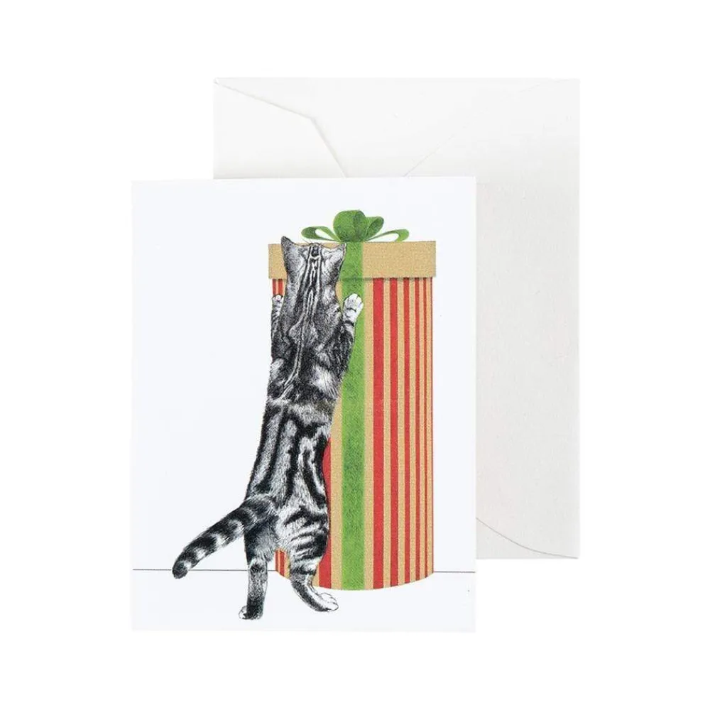 Caspari Christmas Gift Tags & Labels|Gift Tags & Enclosure Cards|Curious Christmas Cats Gift Enclosure Cards - 4 Mini Cards & 4 Envelopes