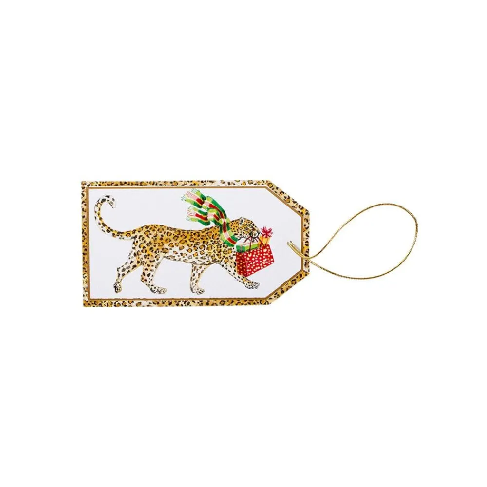 Caspari Christmas Gift Tags & Labels|Gift Tags & Enclosure Cards|Leopards in Snow Classic Gift Tags - 4 Per Package