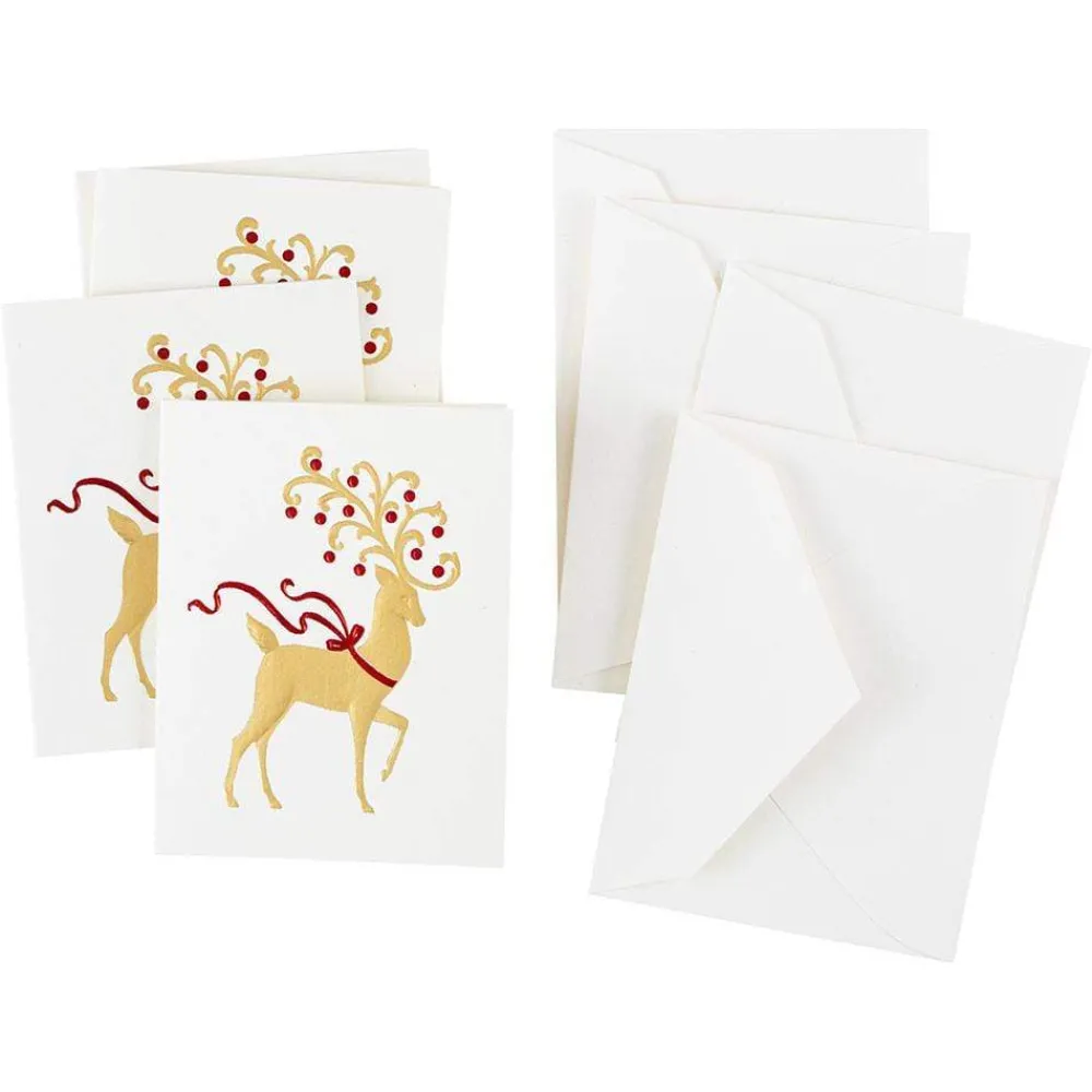 Caspari Christmas Gift Tags & Labels|Gift Tags & Enclosure Cards|Reindeer Gift Enclosure Cards - 4 Mini Cards & 4 Envelopes