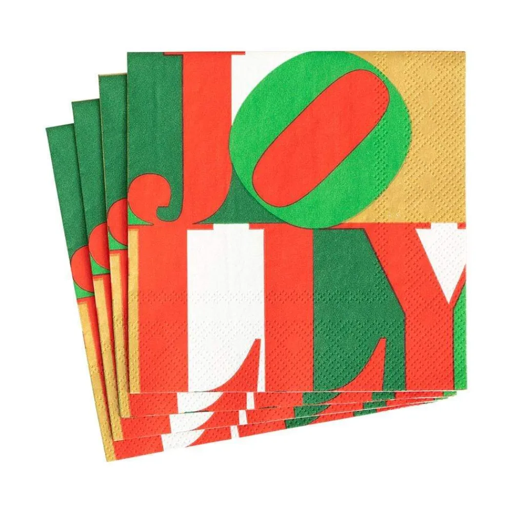 Caspari Christmas Napkins|Paper Cocktail Napkins|Holly Jolly Paper Cocktail Napkins - 20 Per Package