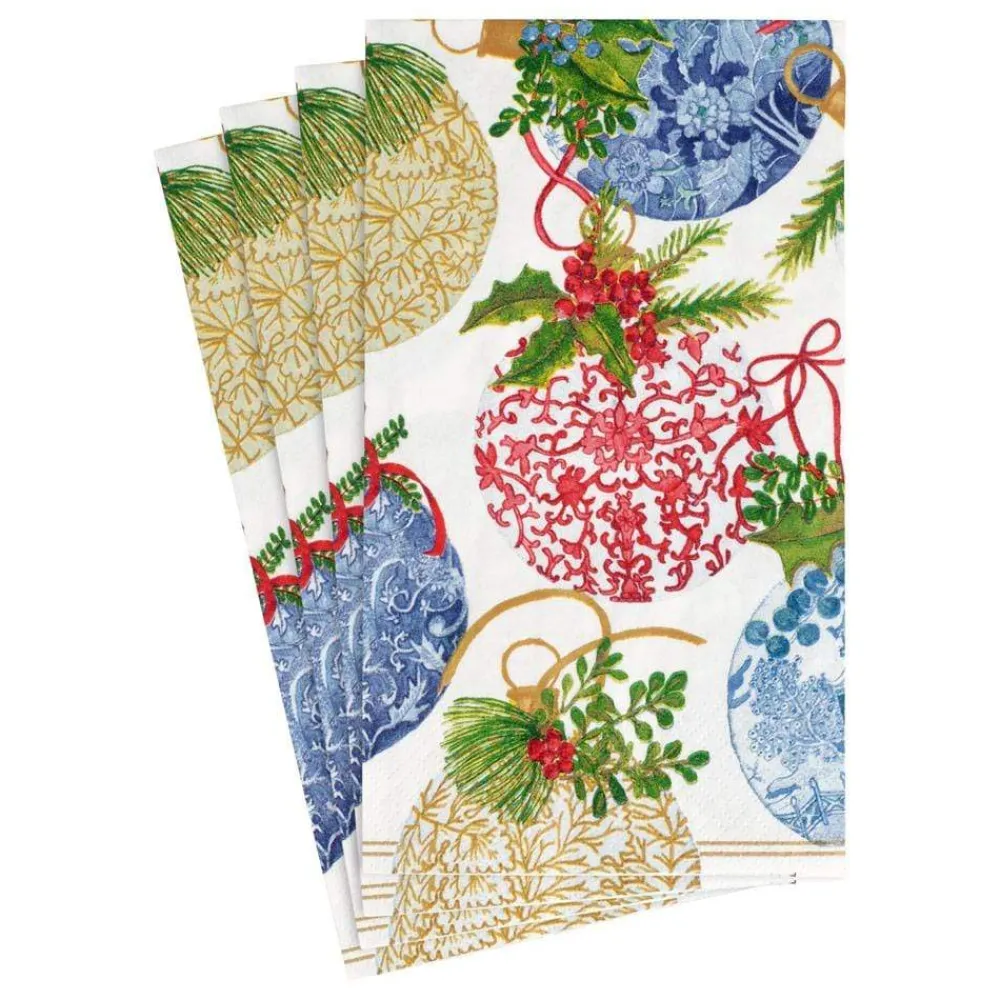 Caspari Christmas Napkins|Paper Guest Towels|Porcelain Ornaments Paper Guest Towel Napkins - 15 Per Package