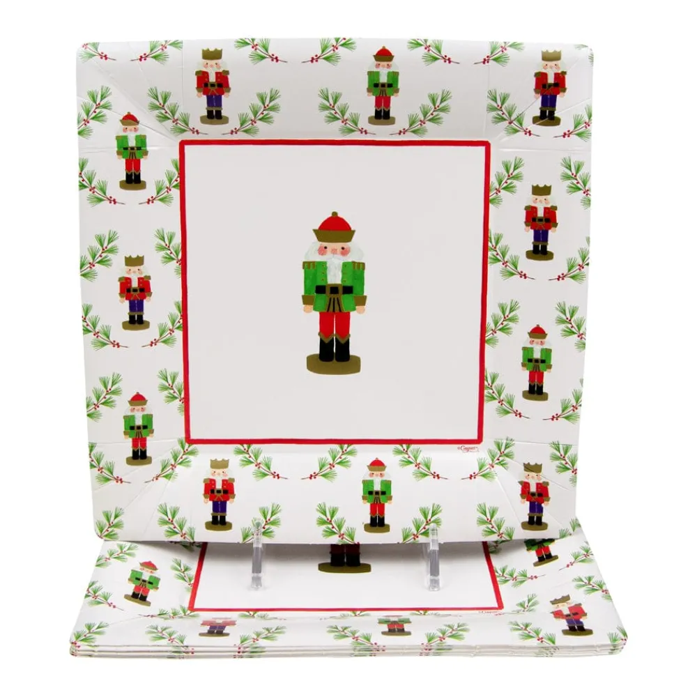 Caspari Christmas Plates|Paper Salad And Dessert Plates|Little Nutcracker Sq Salad & Dessert Plates – 8 Per Package