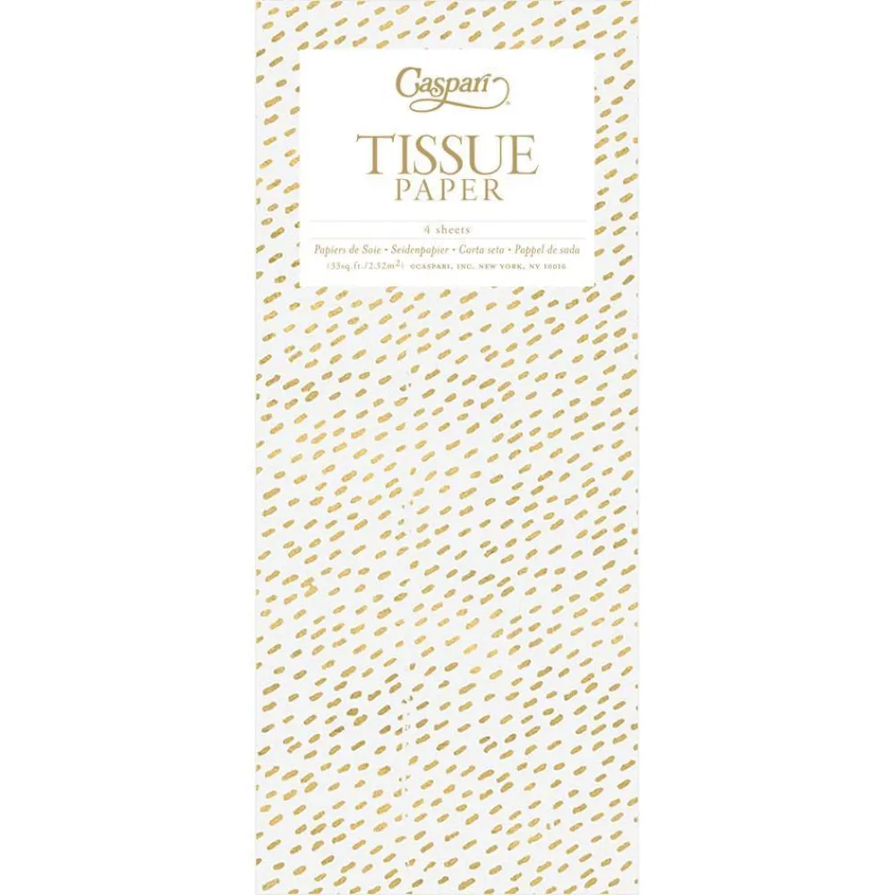 Caspari Christmas TIssue Paper|Bridal Shower|Little Dash Tissue Paper in White & Gold - 4 Sheets Included