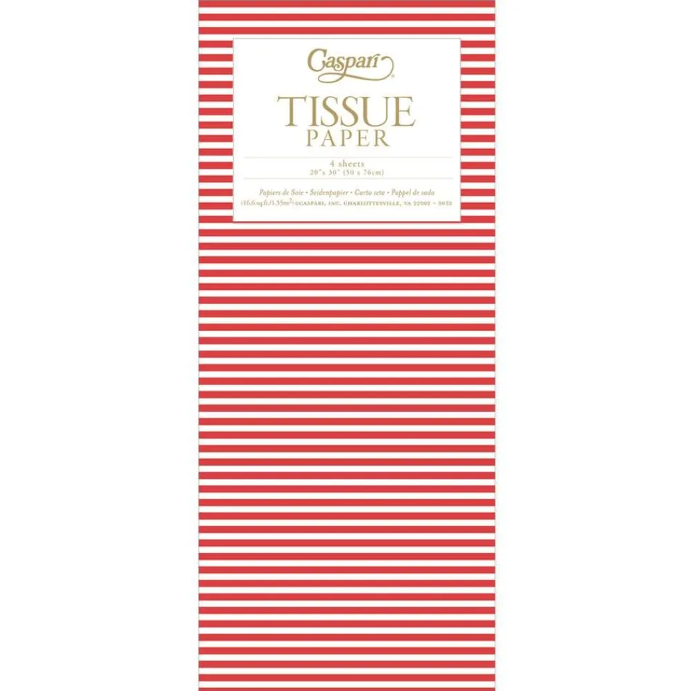 Caspari Christmas TIssue Paper|Tissue Paper|Mini Stripe Tissue Paper in Red - 4 Sheets Included