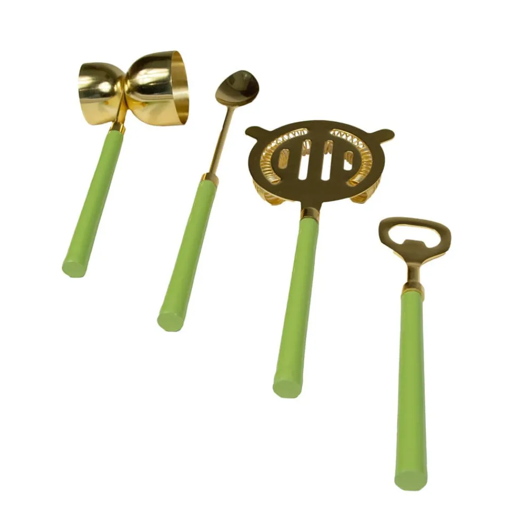 Add cheerful color to the bar with our Enameled Barware Set. Featuring a Shiny Brass finish and enameled handle, this set of 4 barware tools makes a fun gift for yourself or others.