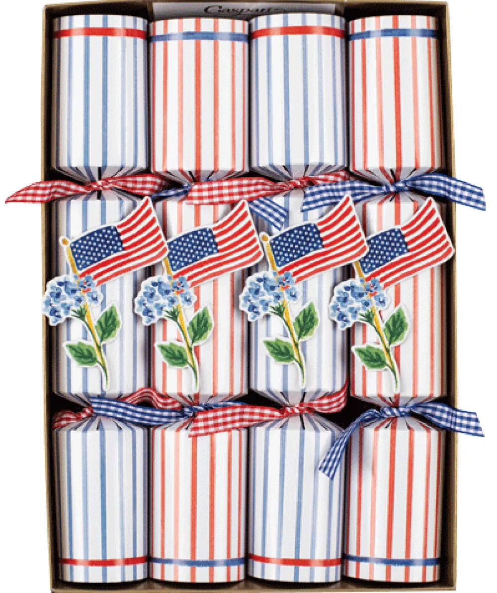Caspari Fourth Of July|Memorial Day|Flags And Hydrangeas Eday Crackers-10 Inch Long/8In
