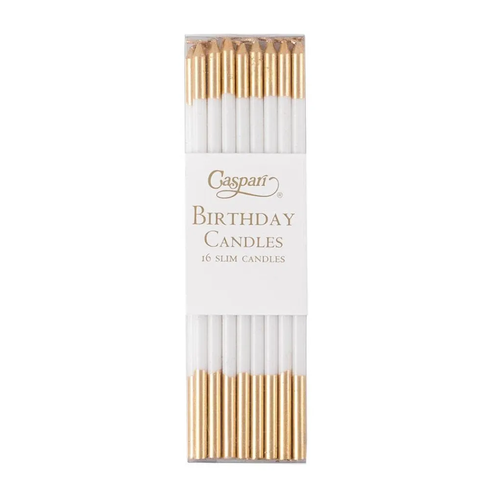Caspari Graduation Celebration|Birthday|Slim Birthday Candles in White & Gold – 16 Candles Per Package