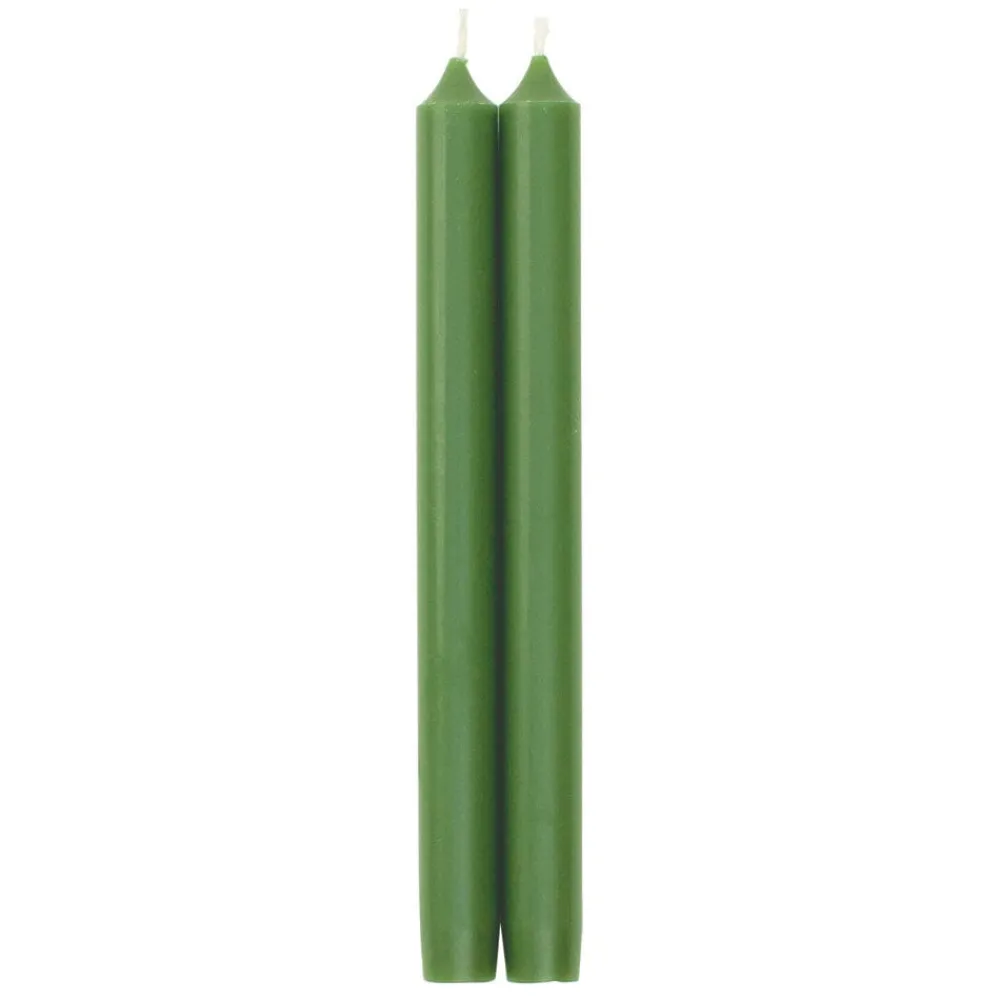Our elegant 10-inch crown candles are made with a paraffin and palm wax blend. To ensure a clean burn, they feature a lead-free cotton wick. Smokeless and dripless, they can be safely burned from your tabletop to your mantle without worry of a mess. The pairs are available in a variety of beautiful through-colors or metallic finishes. Our assortment that ensures candles are available to coordinate with any Caspari table setting or décor. Effortlessly add warmth and charm to your table when you display any of our crown candles in a standard candlestick or tapered candle holder.