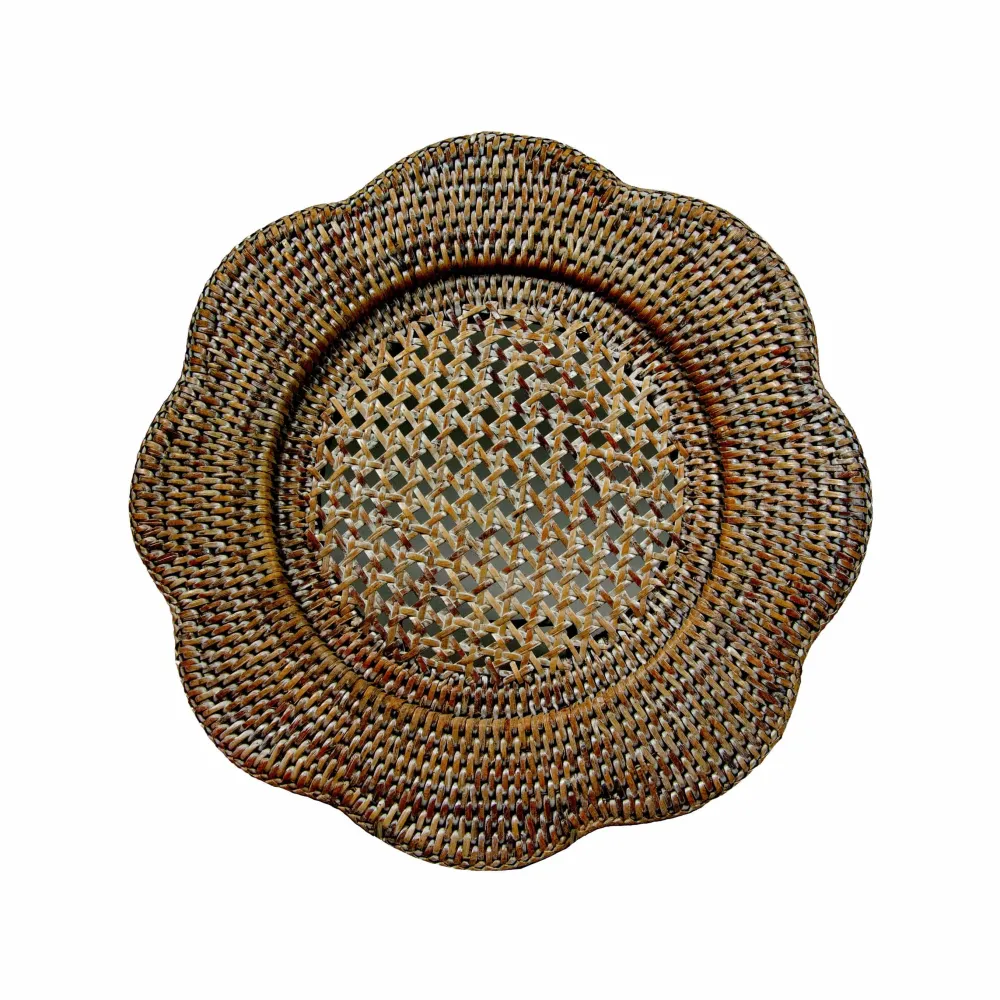 Handwoven and lacquered in Myanmar, our rattan table accents feature a durable double-weave and handcrafted charm. Constructed from naturally fast-growing rattan, these reusable pieces add an element of eco-friendly style to your tabletop. The natural material perfectly complements existing Caspari patterns and palettes with subtle texture and neutral color. Our rattan chargers are designed to fit Caspari plates and help lay a foundation for your place settings. Layer them beneath plates to add stability, use them as serving accents, or even use them in your tabletop décor and displays. Can be used for indoor or outdoor entertaining but are not suitable for outdoor storage or exposure to inclement weather conditions.