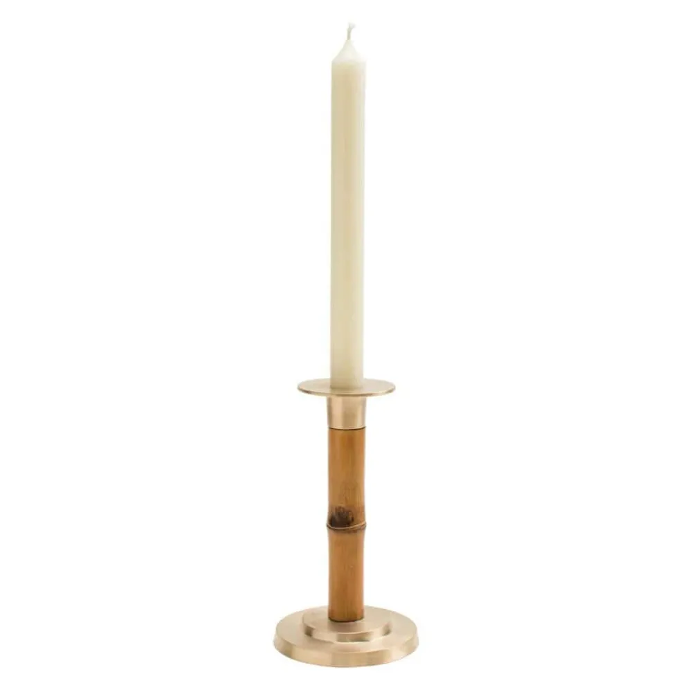 An ideal style between casual and elegant, our bamboo and brass candlesticks are designed to elevate tablescapes and home décor alike during any season. The warm wood and brass tones give them a versatile neutrality perfect for pairing with any color in our tapered candle collection.