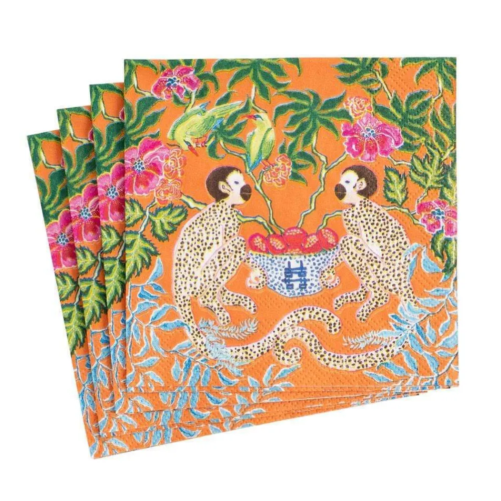 Caspari Mother’S Day|Paper Cocktail Napkins|Monkeys Paper Cocktail Napkins in Orange – 20 Per Package