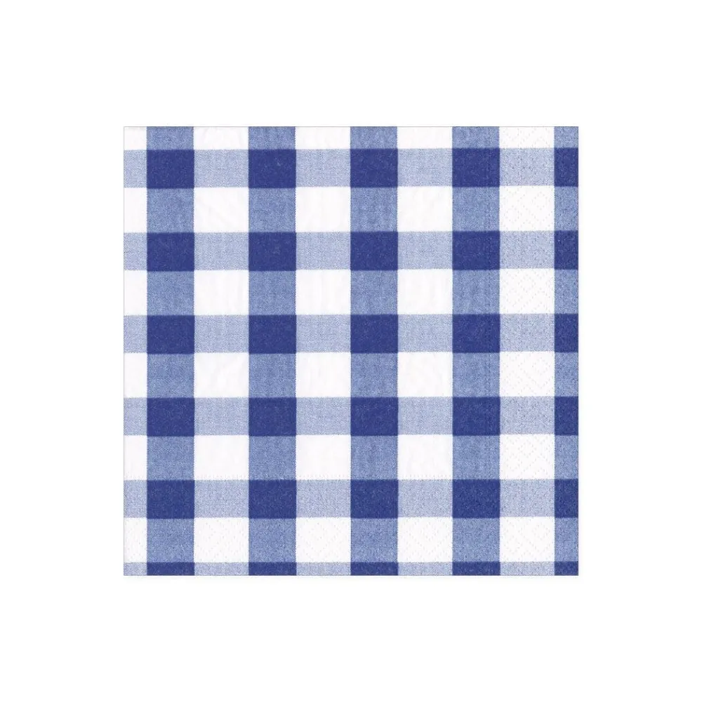 Caspari Paper Cocktail Napkins|Gingham Paper Cocktail Napkins in Blue - 20 Per Package