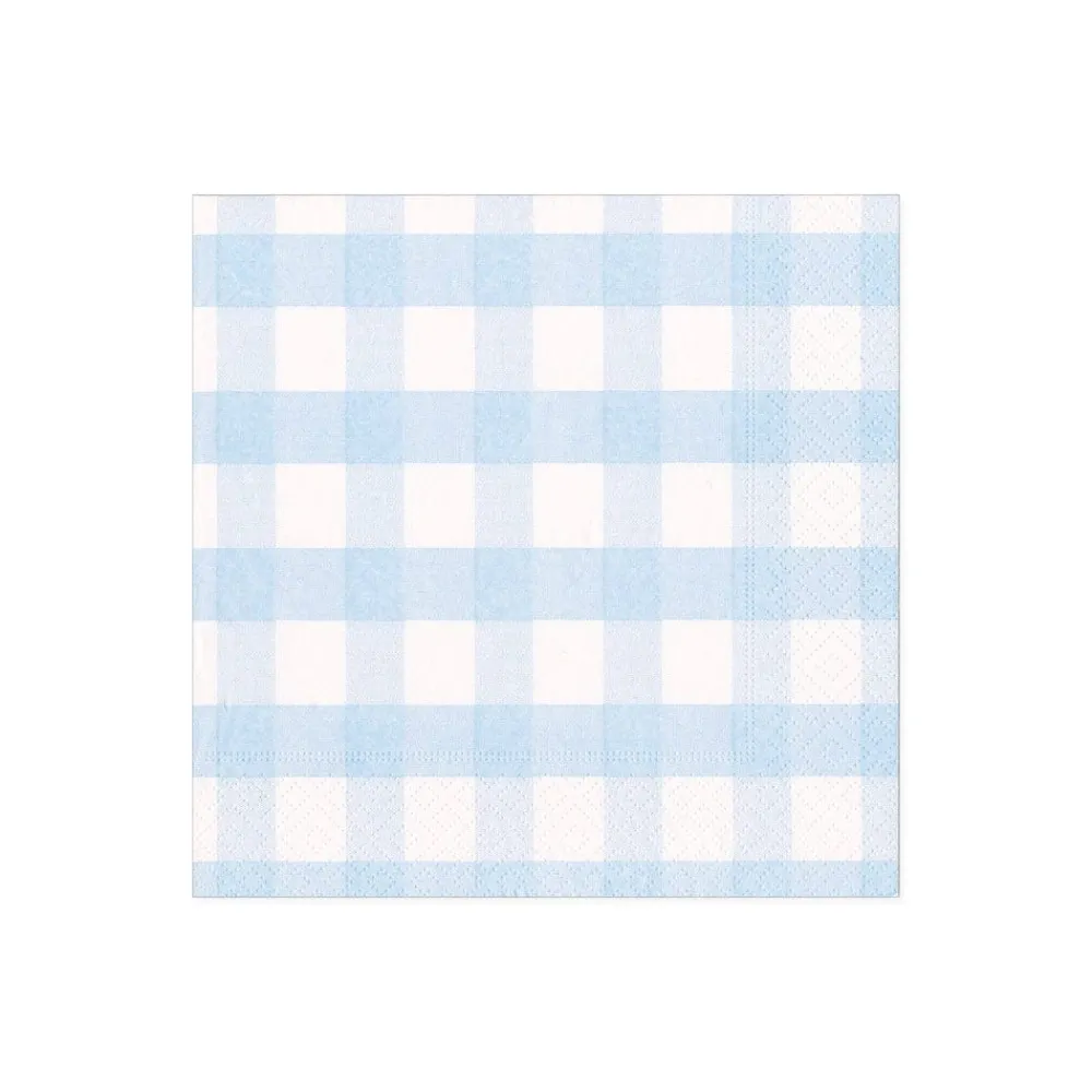 Caspari Paper Cocktail Napkins|Gingham Paper Cocktail Napkins in Light Blue - 20 Per Package