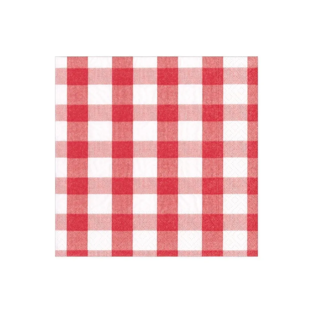 Caspari Paper Cocktail Napkins|Gingham Paper Cocktail Napkins in Red – 20 Per Package