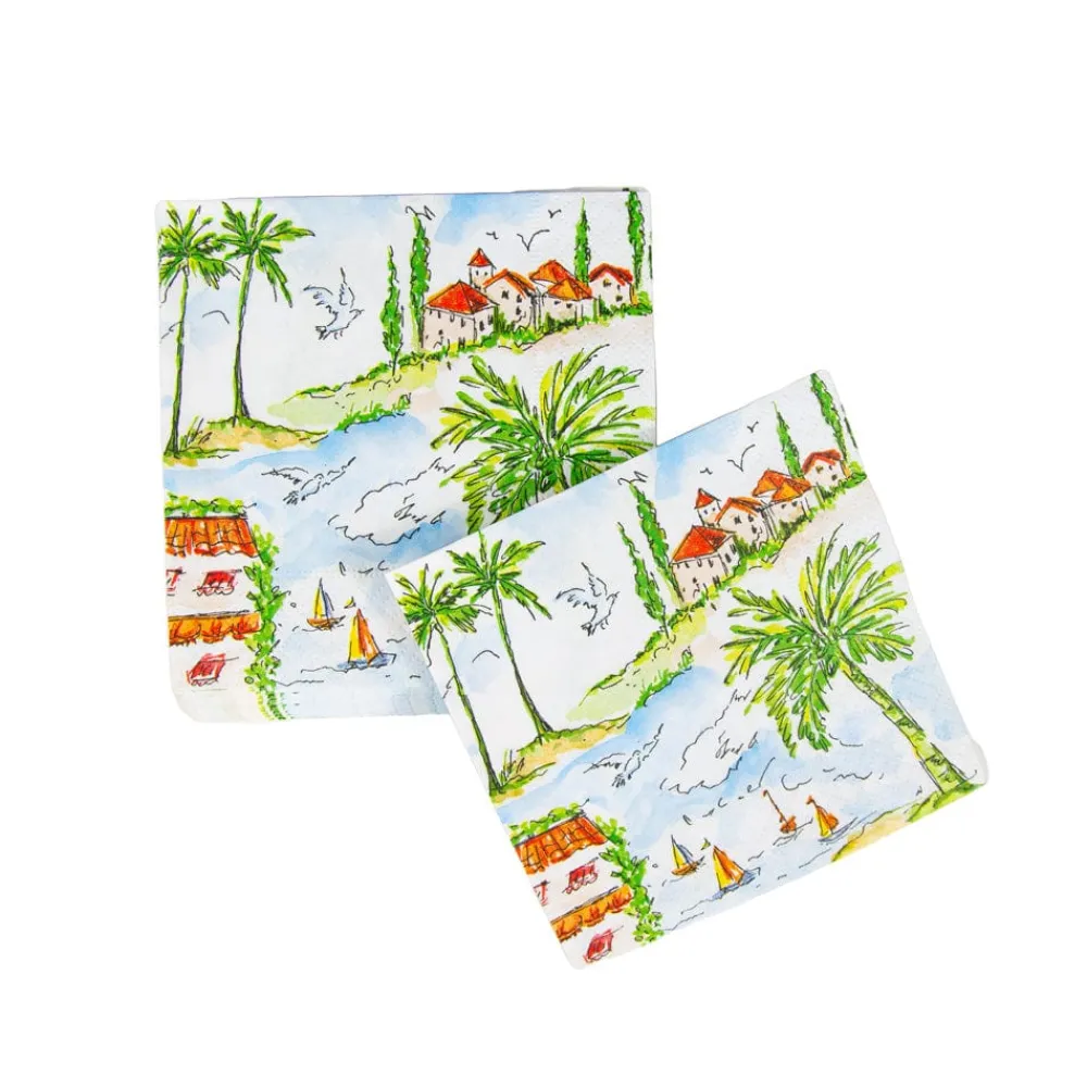 Caspari Paper Cocktail Napkins|Mallorca Cocktail Napkins - 20 Per Package