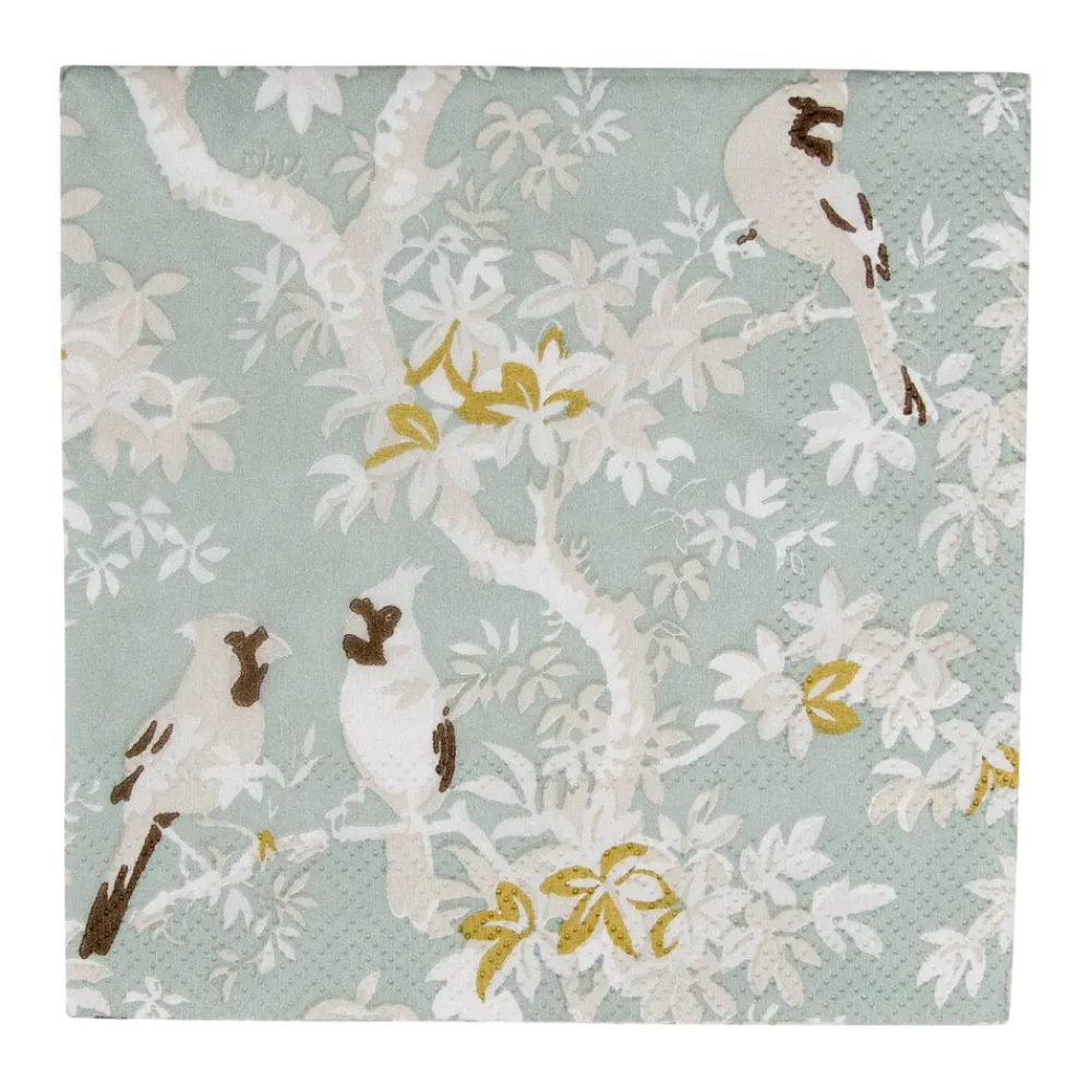 Caspari Paper Cocktail Napkins|Scenic Songbirds Celadon Cocktail Napkins – 20 Per Package