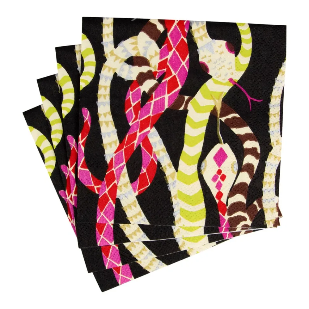 Caspari Paper Cocktail Napkins|Serpentine Black Cocktail Napkins - 20 Per Package