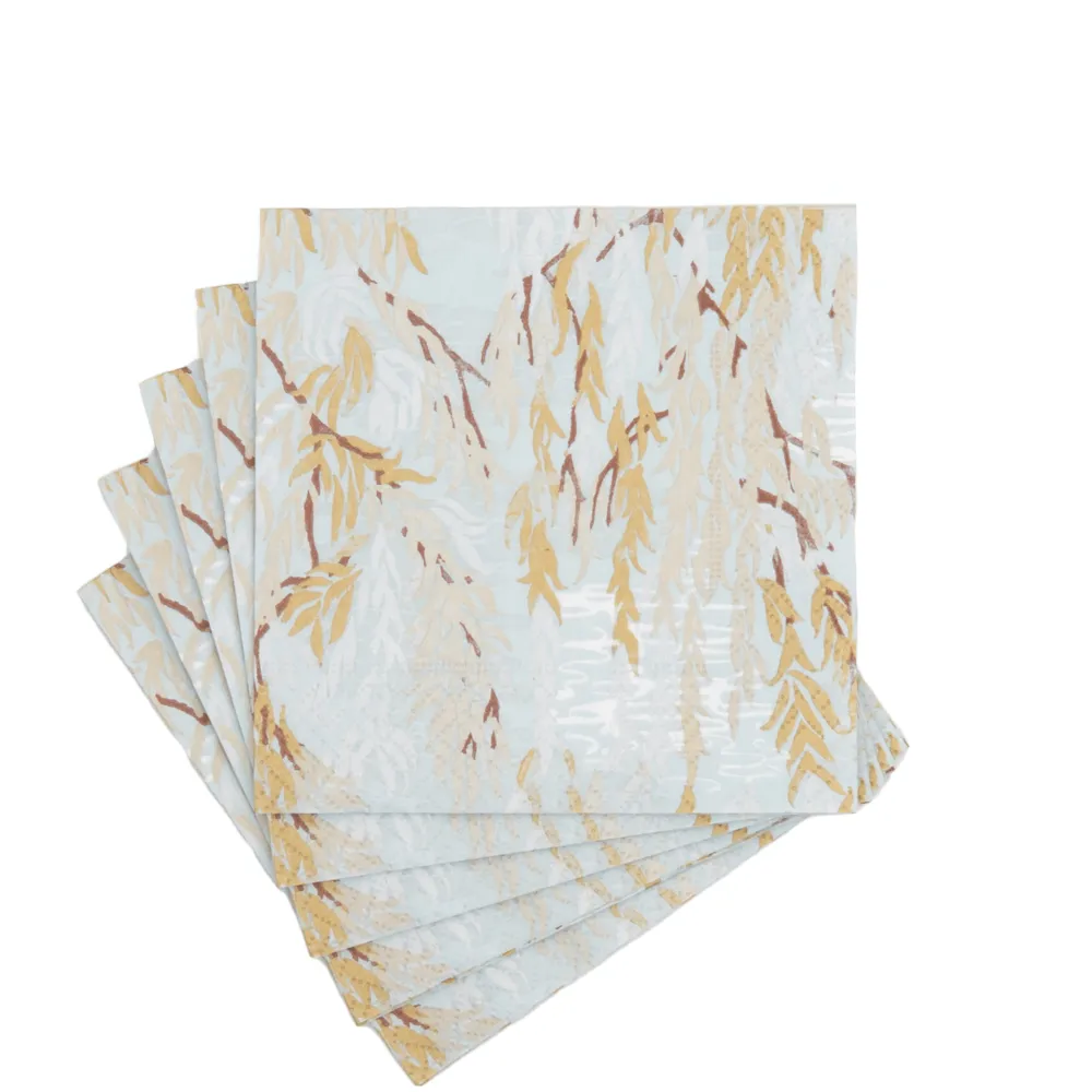 Caspari Paper Cocktail Napkins|Willows Silver Cocktail Napkins - includes 20 Cocktail Napkins