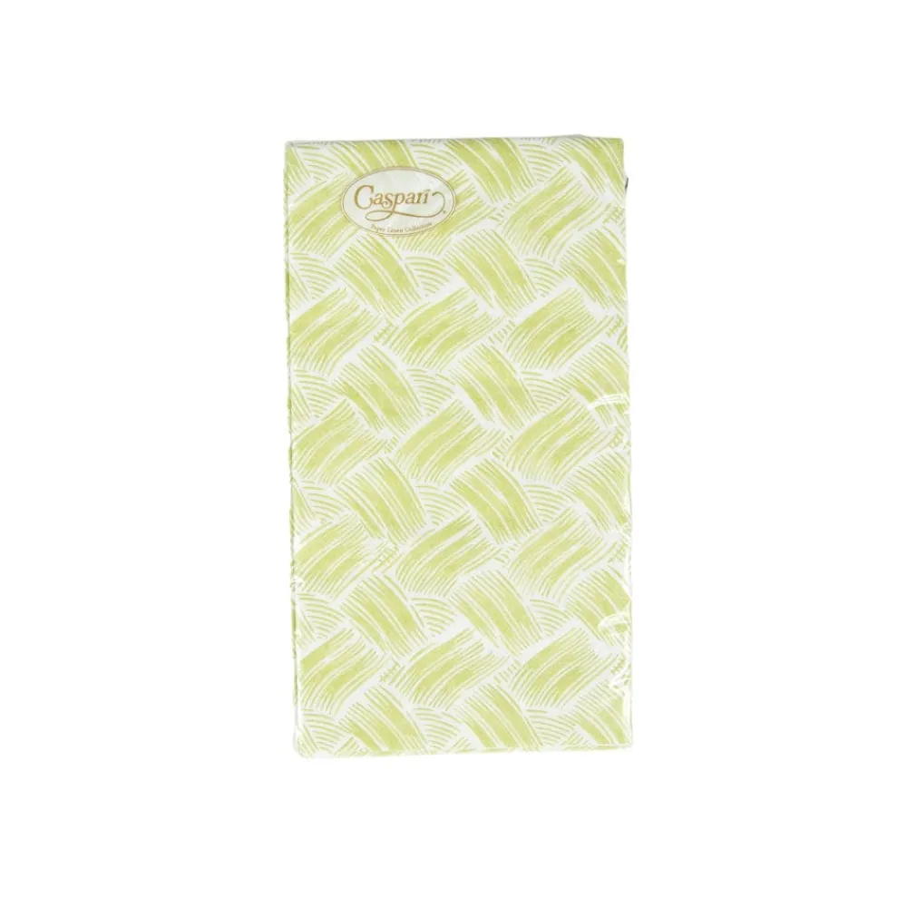 Caspari Paper Guest Towels|Basketry Moss Green Paper Linen Guest Towel Napkins - 12 Per Package