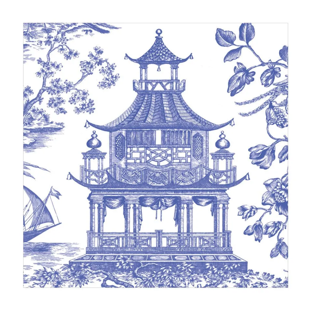 Caspari Paper Luncheon Napkins|Chinoiserie Toile Pagoda Luncheon Napkins in Blue- 20 Per Package
