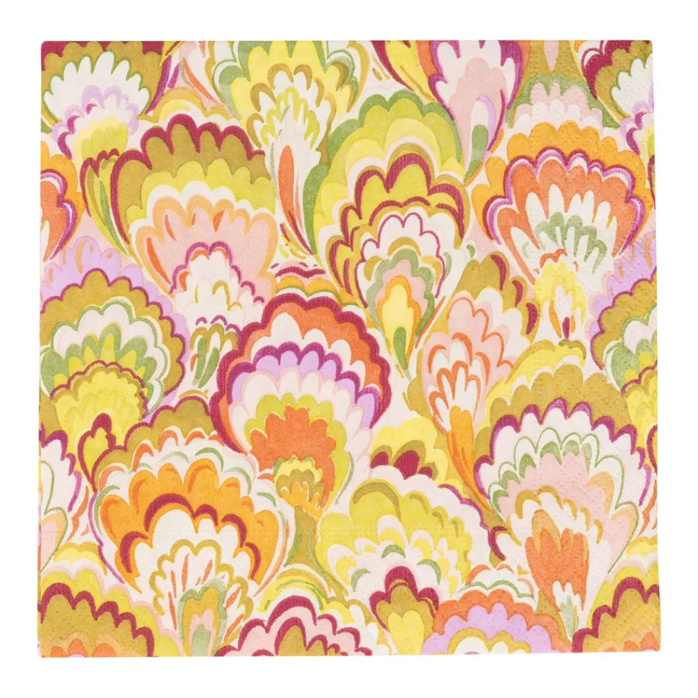 Caspari Paper Luncheon Napkins|Marbled Ceramica Raspberry & Chartreuse Luncheon Napkins – 20 Per Package