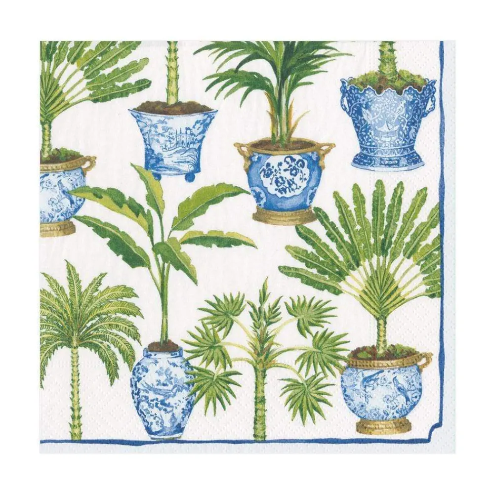 Caspari Paper Luncheon Napkins|Potted Palms Paper Luncheon Napkins in White - 20 Per Package