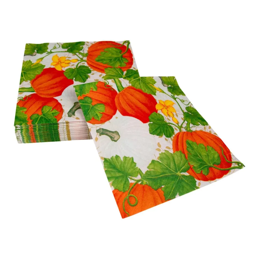 Caspari Paper Luncheon Napkins|Pumpkin Chintz White Luncheon Napkins – 20 Per Package
