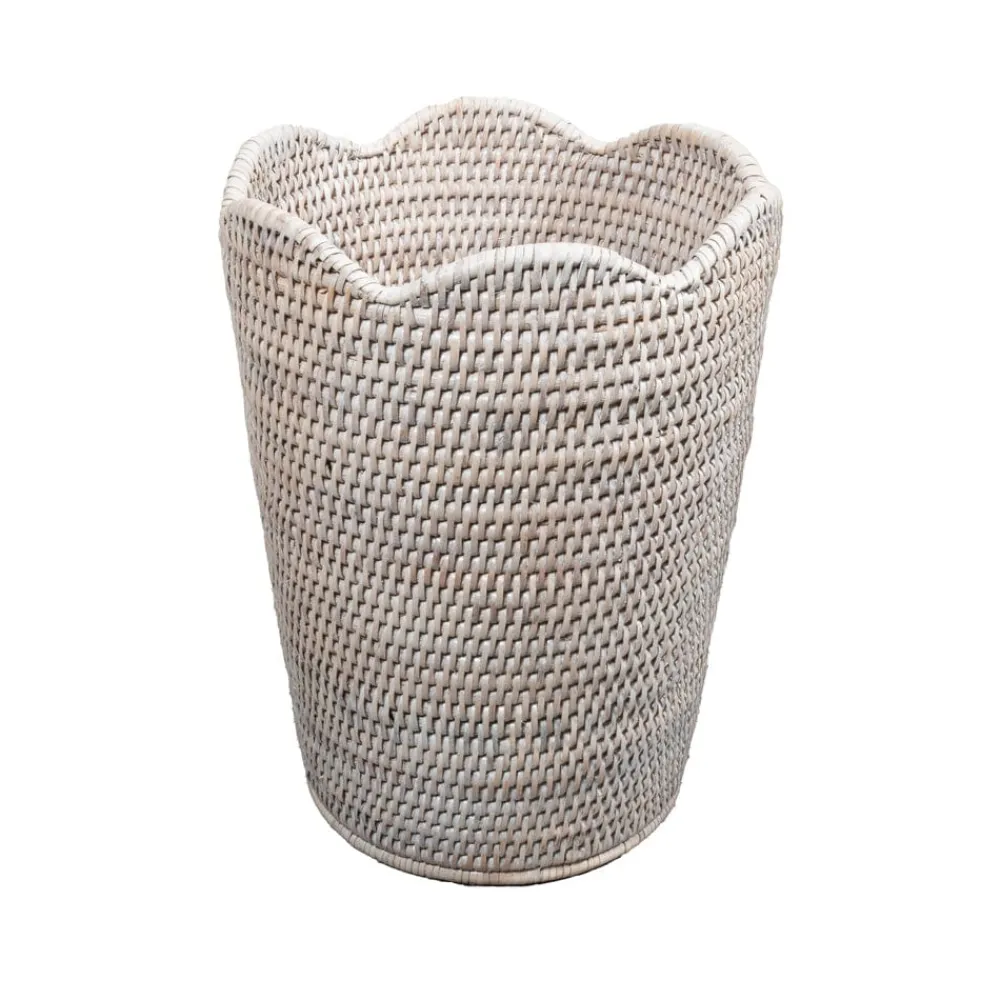 Handwoven from fast growing, sustainable rattan, our rattan accessories bring a timeless texture and warmth to the home. The Scalloped Rattan Waste Basket features a charming, scalloped rim and a slightly tapered shape. It coordinates perfectly with our Rattan Tissue Box Cover in the powder room or office.