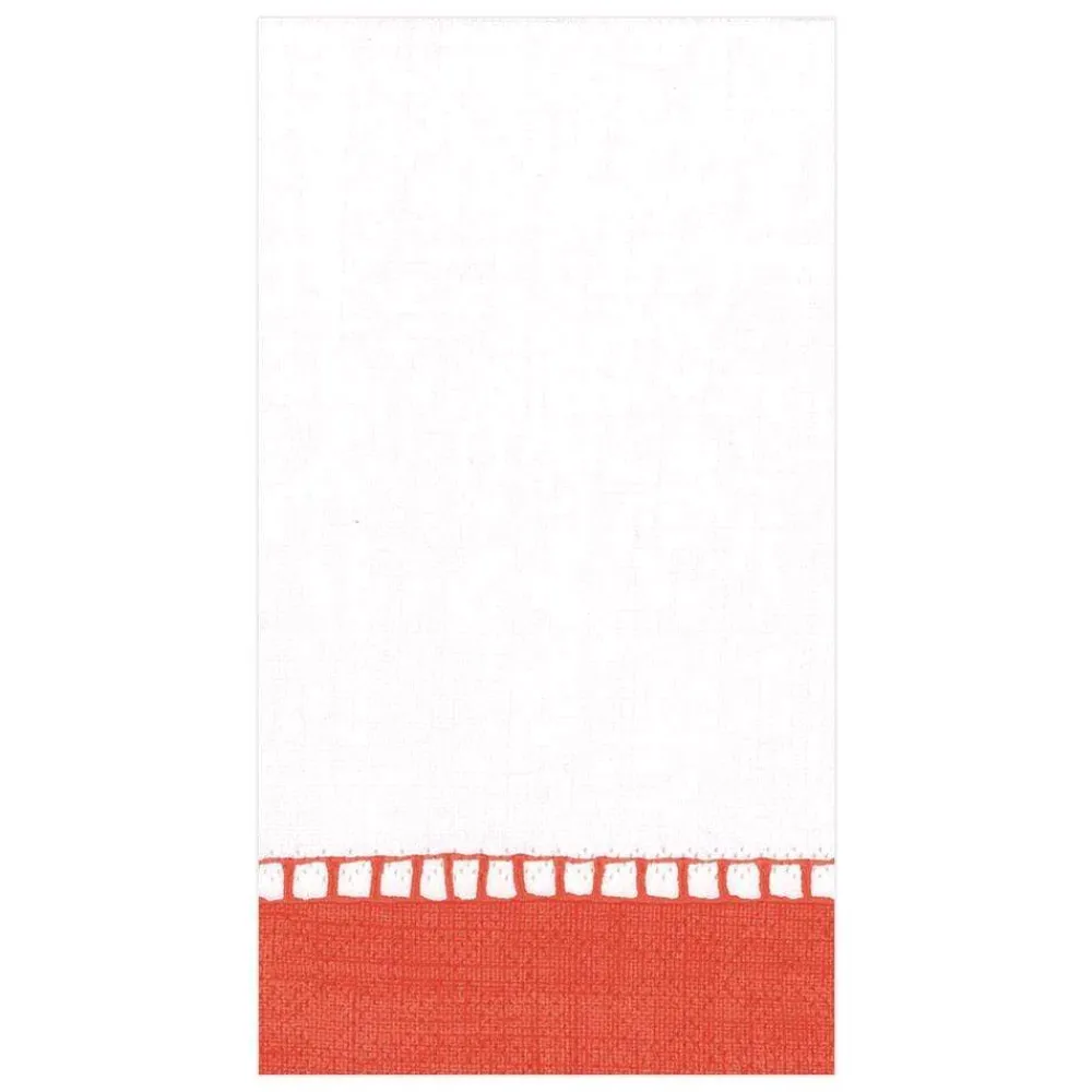 Caspari Tailgates|Paper Guest Towels|Linen Border Paper Guest Towel Napkins in Coral - 15 Per Package