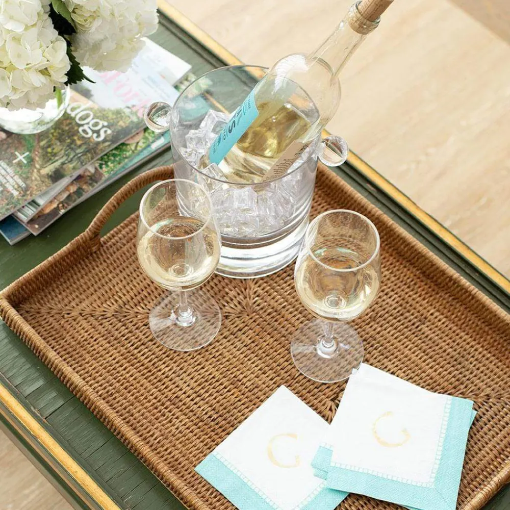 Handwoven and lacquered in Myanmar, our rattan table accents feature a durable double-weave and handcrafted charm. Constructed from naturally fast-growing rattan, these reusable pieces add an element of eco-friendly style to your tabletop. The natural material perfectly complements existing Caspari patterns and palettes with subtle texture and neutral color. Our rattan serving trays are designed with rounded handles that make them perfect for use at dinner parties or serving breakfast in bed. They can be used for indoor or outdoor entertaining but are not suitable for outdoor storage or exposure to inclement weather conditions.