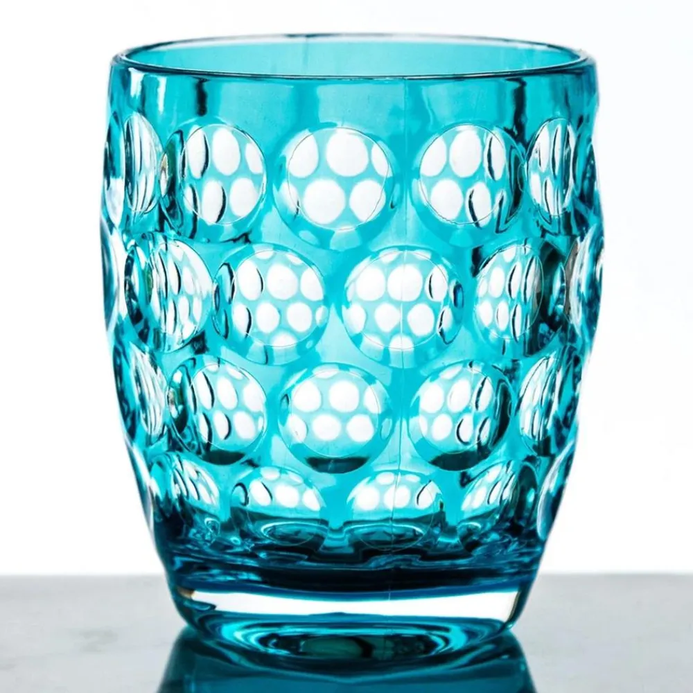 The acrylic Lente Tumbler glass is a fun pop art-inspired design making this plastic tumbler chic and practical. The Lente Collection features indented polka dots in various color options. Set your table with modern plastic glassware and barware.