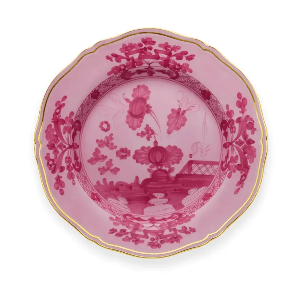 The Oriente Italiano Collection features a magnificent pattern created through inventiveness of color and artistic airbrush technique. A stylized flower, known as the “garofano,” or carnation, in the tradition of Florentine ceramics and reinterpreted by Gio Ponti in 1946, adorns the collection.