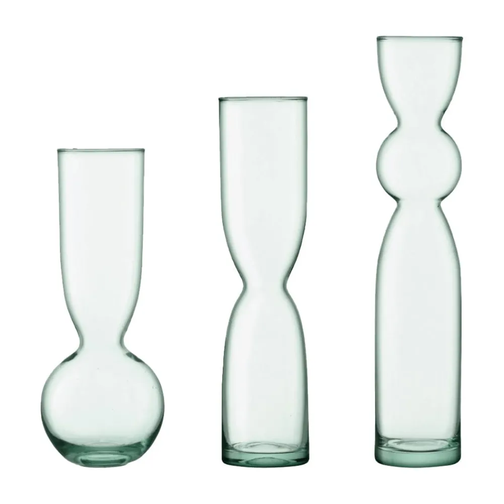 A set of three tall, slim vases inspired by the Eden project’s biospheres with the focus on sustainability. Each vase is mouth blown from recycled glass in different domed designs. Fill with fresh cut flowers, grow bulbs or use to display dried grasses.