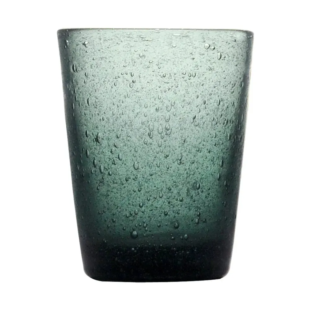 Each glass is originally colored in glass paste, ensuring that the original intensity of the color is maintained. The distinctive feature of Memento glassware is its bubbles, produced by special lathe processing and present in large quantities inside the glass. Â
