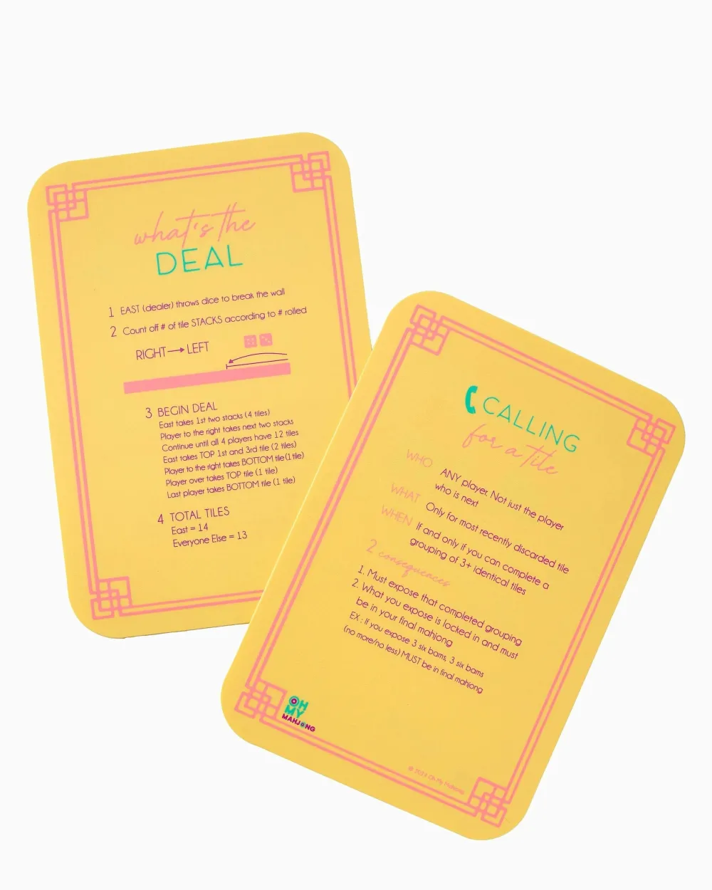 4 Yellow Line Finders: Stay focused on your winning strategy with four matching yellow line finders to mark your chosen line on the National Mah Jongg League card.
