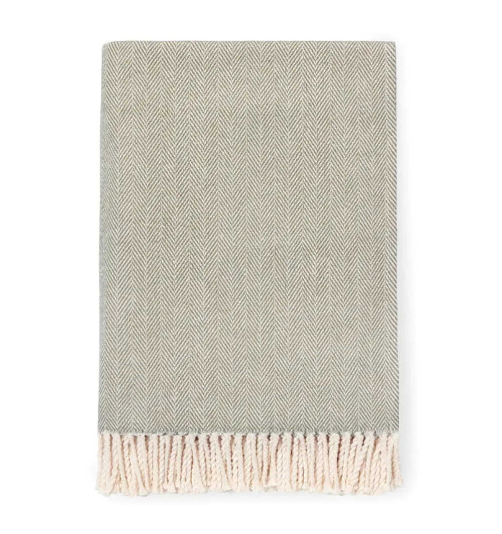 This classic throw blanket from Sferra blends cream and neutral tones in a beautiful herringbone weave. It features a plush, brushed cotton texture and is finished with a natural-toned twisted fringe.