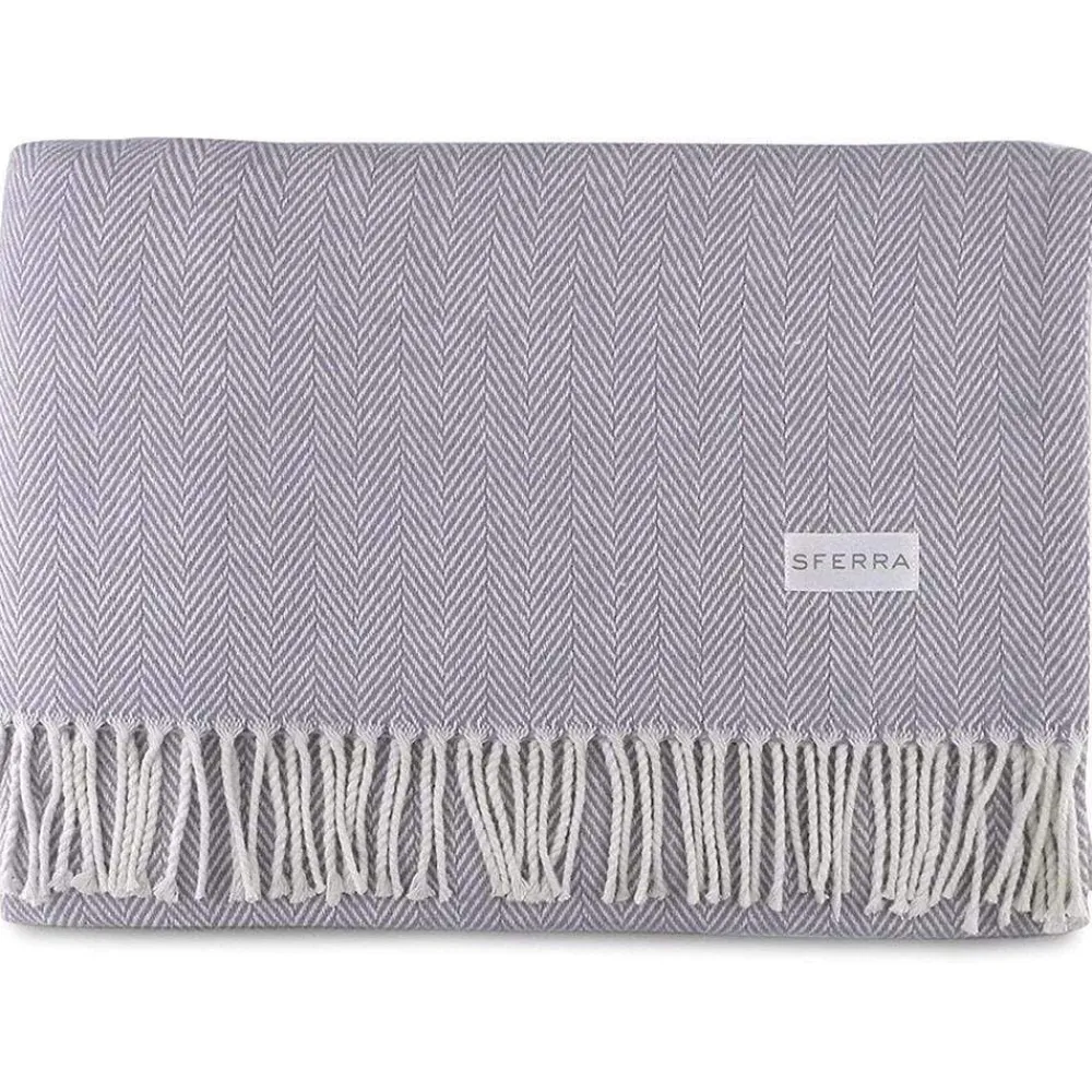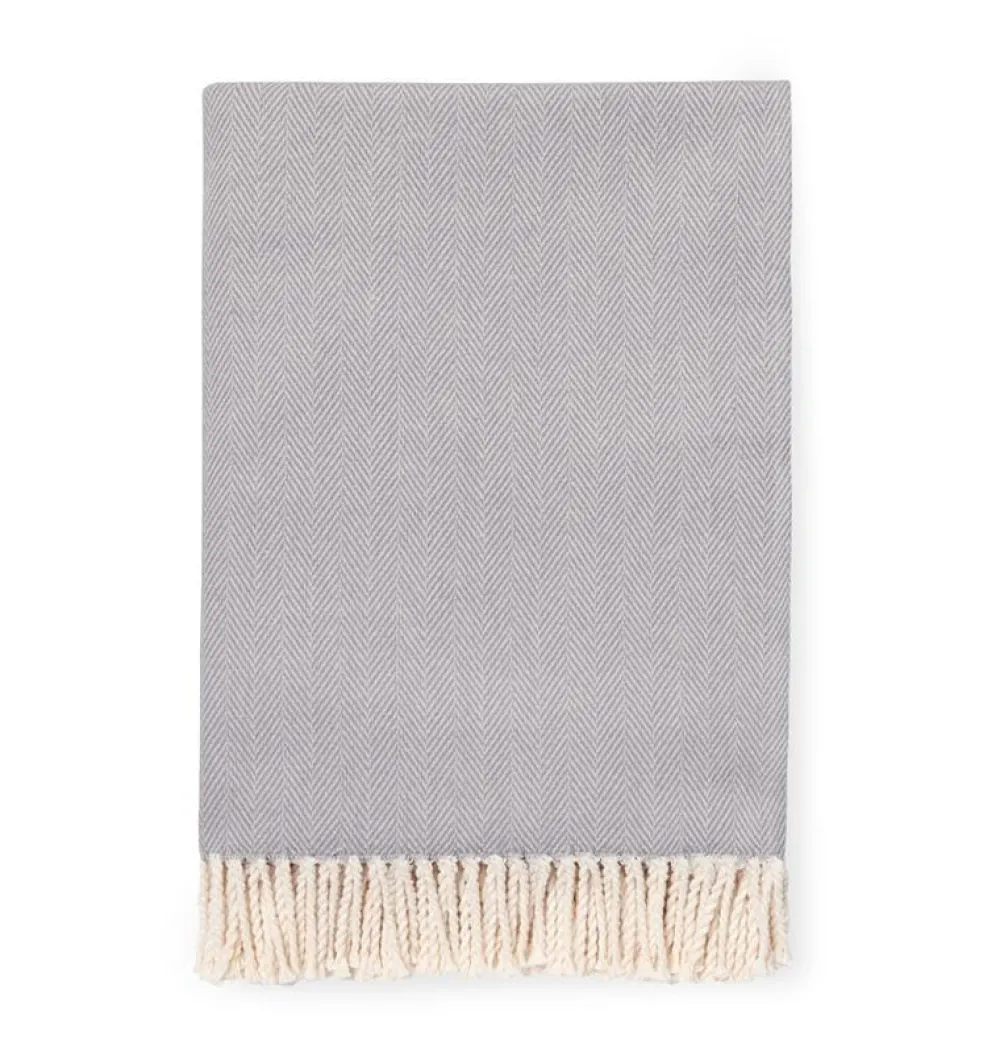 This classic throw blanket from Sferra blends cream and neutral tones in a beautiful herringbone weave. It features a plush, brushed cotton texture and is finished with a natural-toned twisted fringe.