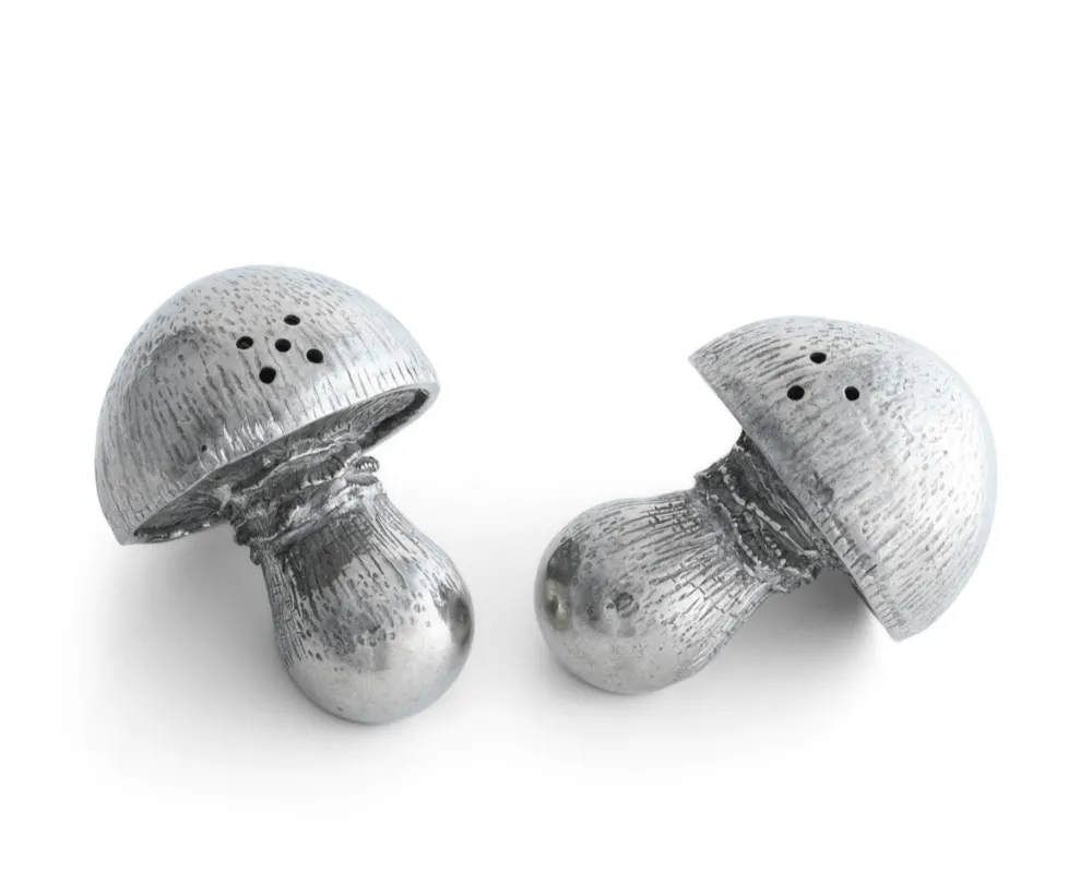 Fun to handle and cute as a button, Vagabond House’s Mushroom Salt and Pepper Set adds a bit of fungal charm to your garden-themed table. Crafted in luxury-grade pewter, these piece feature exquisite gills underneath their large, umbrella-shaped caps. Our craftsmen capture the unpredictability of the mushroom in the various detail throughout the design of these dispensers.