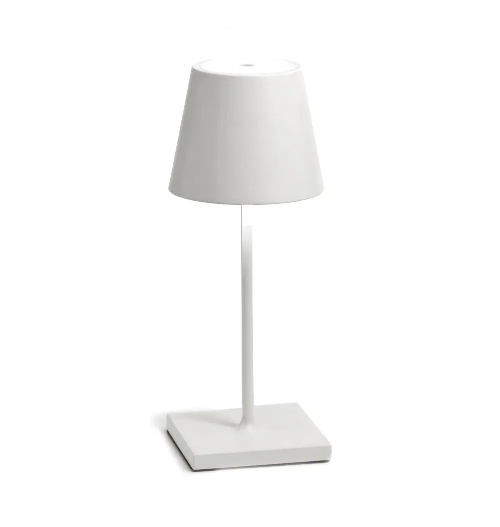 Recharge the Poldina Pro Mini lamp by placing it on the included contact charging base. Battery lasts for at least 12 hours of illumination and needs to charge for 6-7 hours. Thanks to the electronic control system, the lamp monitors and indicates the remaining battery power, allowing you to optimize recharges while ensuring correct and safe use to avoid overloads.