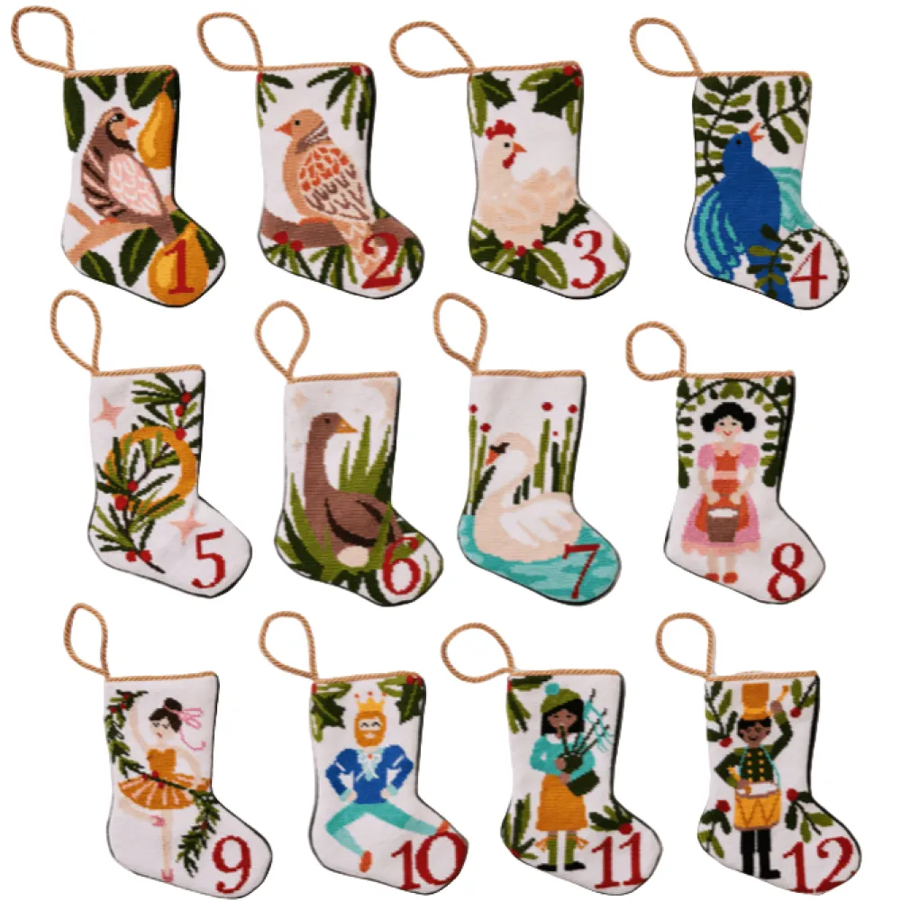 Each needlepoint Bauble Stocking is hand-stitched in Haiti for fair trade by a certified BCorp.