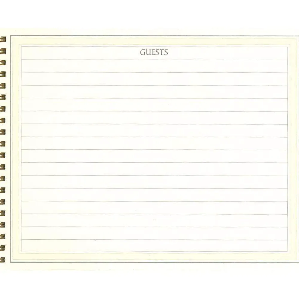 - Spiral bound book of 39 double-sided, lined guest book pages.
